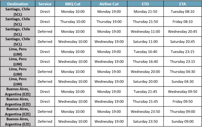 上面的是從休斯敦到拉丁美洲的航空貨運(yùn)合并時(shí)間表